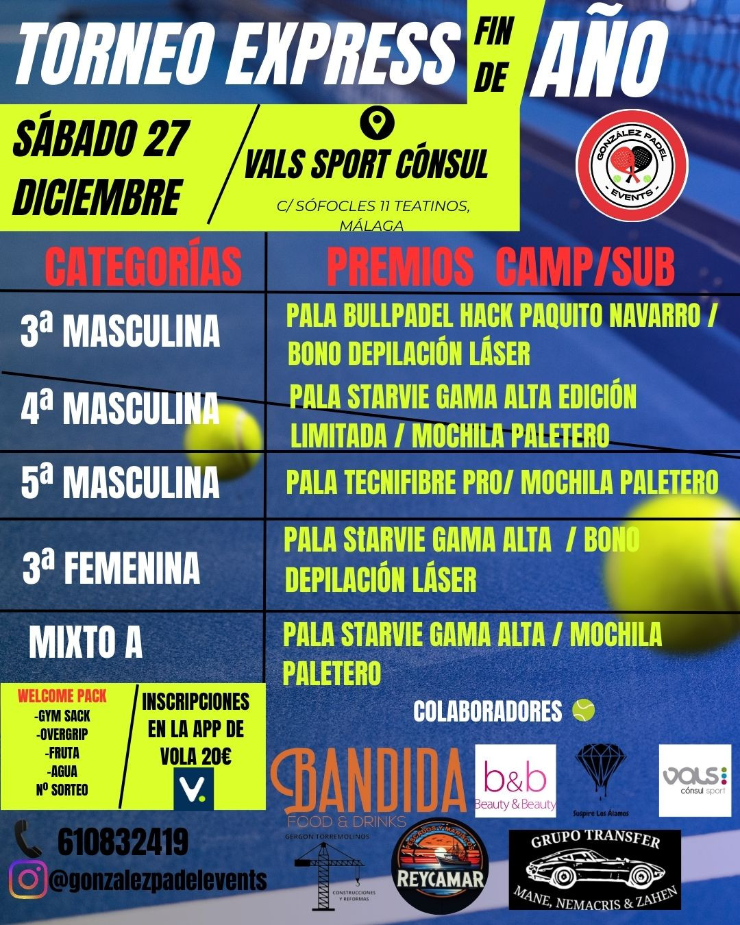 Soy organizador de un torneo amateur con distintas categorias que tendrá lugar los dias 8 y 9 de marzo en Vals sport cónsul. Podeis poneros en contacto conmigo, gracias