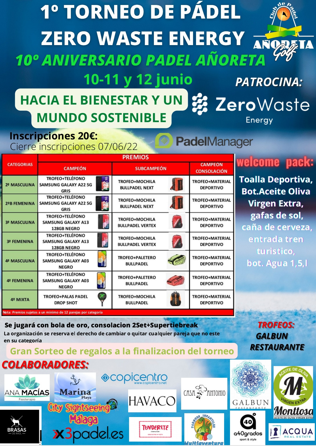 1º TORNEO DE PÁDEL ZERO WASTE ENERGY/ 10º ANIVERSARIO PÁDEL AÑORETA