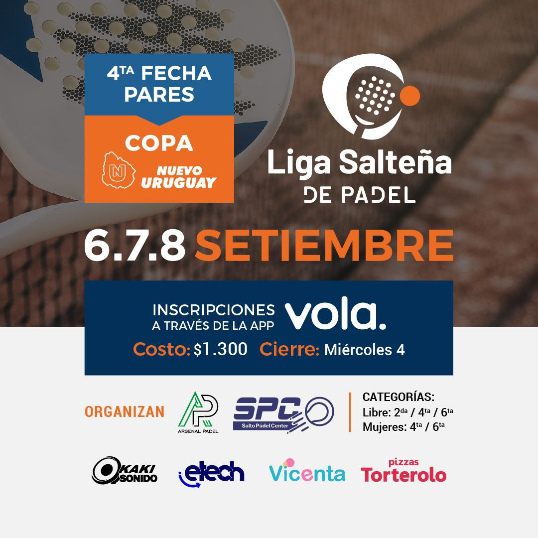 4ta fecha liga salteña de padel - Categorías Pares - Vola